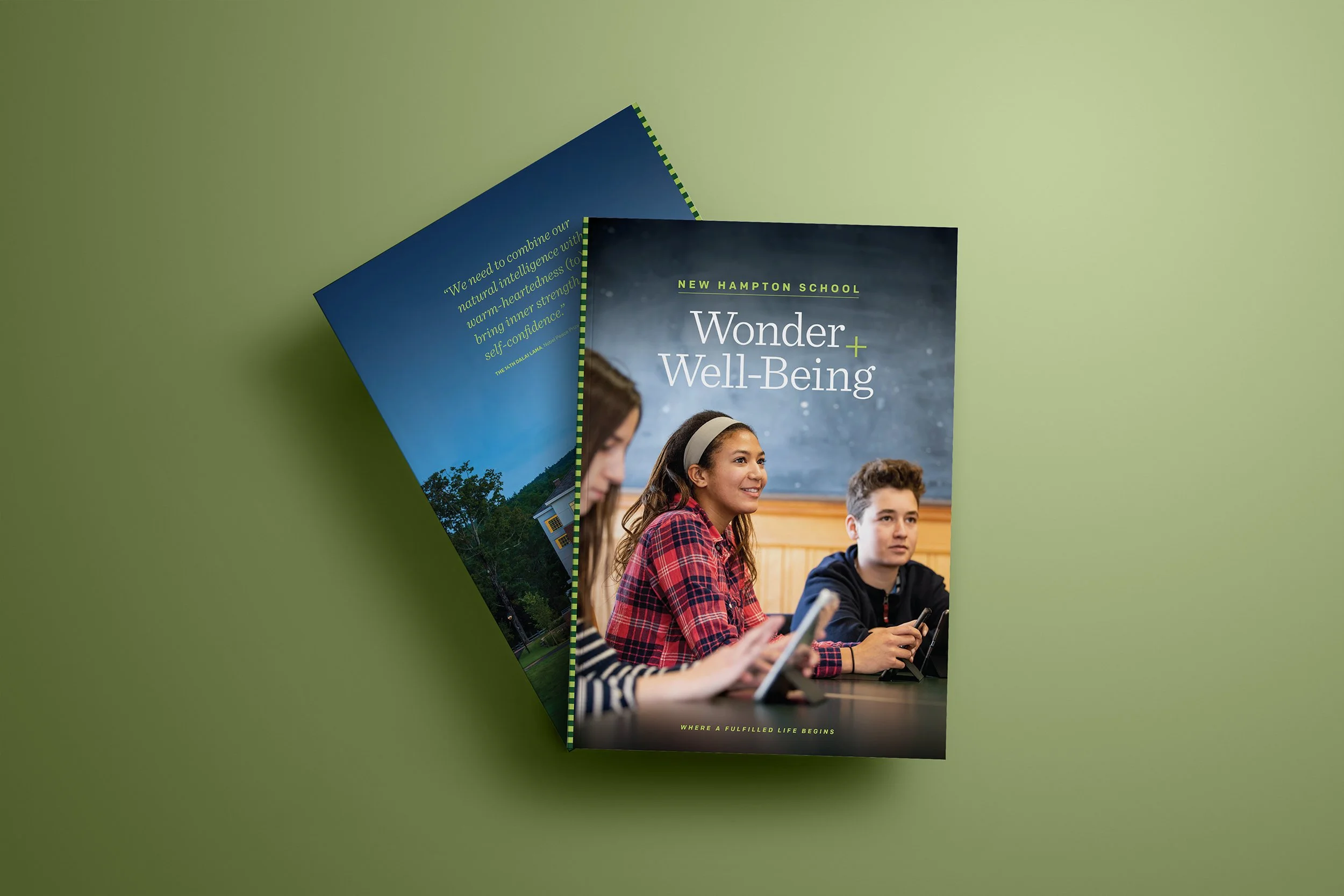 Viewbook design for the New Hampton School in New Hampshire. Through personal stories and quotes we show why student happiness matters and how a healthy and balanced student body is at the heart of an excellent education.